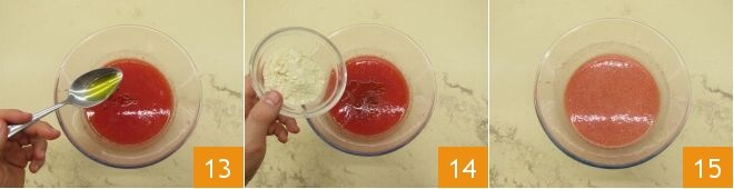 Öl 13, Salz, Pfeffer und Mandelmehl 14. Mischen Sie alles mit einem Schneebesen und stellen Sie es für eine Stunde in den Kühlschrank 15.