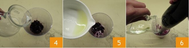 der Sojamilch 4, dem Zitronensaft 5 und beginnen Sie zu mixen, während Sie das Pflanzenöl langsam hinzufügen 6.
