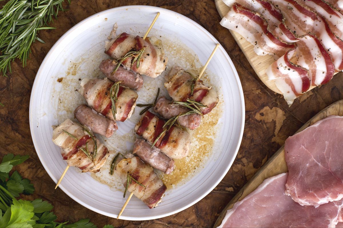 Die geflügelten Vögel sind Fleischspieße mit antiker Herkunft, ein weit verbreitetes Hauptgericht in verschiedenen Regionen Italiens mit kleinen Variationen je nach Ort.