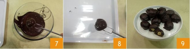 und lassen Sie mit einer Gabel den überschüssigen Schokoladenüberzug abtropfen 7. Legen Sie die Feigen nach und nach auf ein Blech mit Acetatfolie oder Backpapier 8. Lassen Sie die Schokolade kristallisieren und servieren Sie, sobald sie fest geworden sind, Ihre gefüllten, schokoladenüberzogenen Feigen 9.