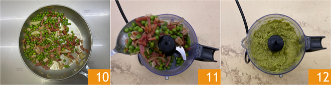 Nach dem Garen vollständig abkühlen lassen 10. Alles in einen Mixer geben 11 und zu einer homogenen Masse pürieren 12, dann in einen Spritzbeutel geben.
