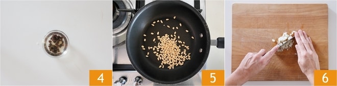 Weichen Sie die Rosinen mindestens 10 Minuten in kaltem Wasser ein 10. Rösten Sie die Pinienkerne in einer Antihaftpfanne für ein paar Minuten 5. Hacken Sie die Zwiebel fein 6.