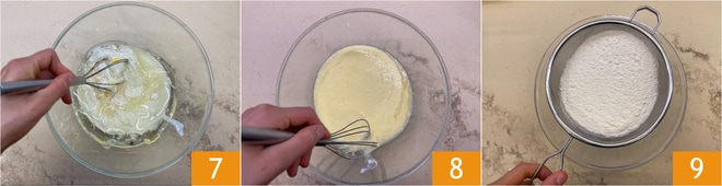Rühren Sie 7, bis eine homogene Mischung entsteht 8. Sieben Sie in einer anderen Schüssel das Mehl 9.