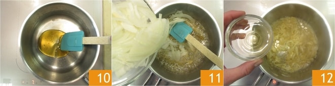 Um die Barbecue-Sauce zuzubereiten, schälen und schneiden Sie zuerst die Zwiebel in dünne Scheiben. Geben Sie den Honig in einen kleinen Topf und erhitzen Sie ihn bei mittlerer Hitze 10, dann fügen Sie die Zwiebel hinzu 11 und lassen Sie sie etwa 5 Minuten lang weich werden, ohne dass sie ihre Farbe ändert. An diesem Punkt fügen Sie den weißen Weinessig 12 und den Senf hinzu.