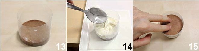 Bereiten Sie das Sahneeis zu: Gießen Sie die Milch in einen kleinen Topf, fügen Sie den Zucker, die Sahne und die aufgeschnittene Vanilleschote hinzu 10, dann verrühren Sie es und erhitzen Sie das Gemisch auf maximal 85˚C. Sobald die Temperatur erreicht ist, stellen Sie den Topf sofort in einen Behälter mit Wasser und Eis, um die Temperatur des Gemischs schnell zu senken 11, und nachdem es abgekühlt ist, gießen Sie es in eine Eismaschine und lassen Sie es mindestens 30 Minuten lang rühren, bis das Gemisch dicht und cremig ist 12. Um das Rezept für das Sahneeis zu sehen, Sahneeis. Vor der Verwendung lassen Sie es mindestens 2 Stunden im Gefrierschrank fest werden.