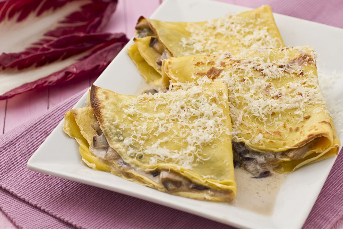 Die Gorgonzola-Radicchio-Crepes sind ein köstliches und herzhaftes Hauptgericht, dessen Füllung mit einer schmackhaften Radicchio-Creme zubereitet wird.