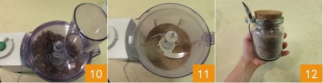 Mixen Sie es erneut 10, bis Sie ein Pulver erhalten 11. Übertragen Sie es dann in eine kleine Schüssel und Ihre granulierte Brühe ist fertig zur Verwendung 12.