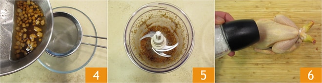 Filtern Sie den Speck: Bewahren Sie die Flüssigkeit auf 4 und pürieren Sie die Rückstände 5. Salzen Sie das Hähnchen 6.