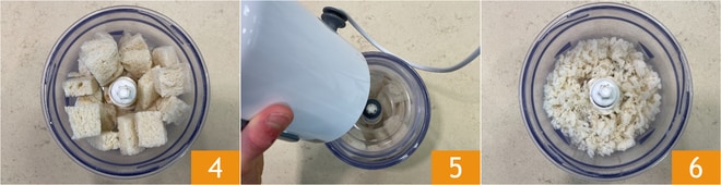 Geben Sie das Brot in einen Mixer 4 und mixen Sie es 5: Sie sollten grobe Krümel erhalten, nicht zu fein 6.