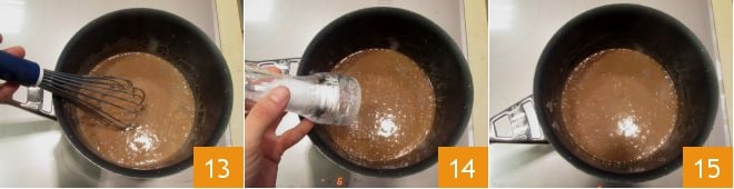 Rühren Sie weiter 13, fügen Sie eine Prise Salz hinzu 14 und Ihre heiße Karamell-Schokolade ist fertig 15.