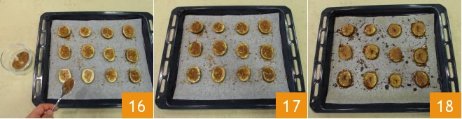Bestreut sie mit Vollrohrzucker 16 und lasst auch diese unter der Grillfunktion bei 240 °C für etwa 3–4 Minuten karamellisieren 17, oder bis sie leicht gebräunt und noch fest sind 18.