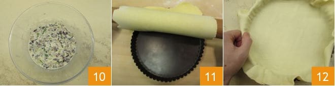 Rühren Sie erneut, um eine homogene Mischung zu erhalten 10. Nehmen Sie nun eine 24 cm Durchmesser große Backform mit gewelltem Rand und legen Sie den Teig darauf 11. Drücken Sie den Boden und den Rand leicht mit den Fingern an, damit der Teig gut haftet 12.