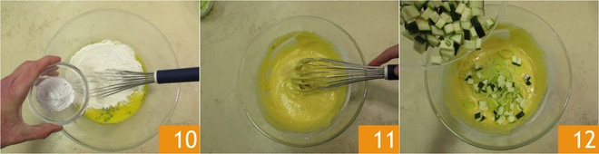 Geben Sie auch das sofortige Backpulver für herzhafte Zubereitungen hinzu 10. Mischen Sie die Zutaten mit dem Schneebesen von Hand 11. Fügen Sie das Gemüse hinzu 12