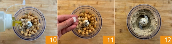 Gießen Sie einen Spritzer Öl 10 dazu und salzen Sie nach 11. Mixen Sie, bis eine homogene Creme entsteht 12.
