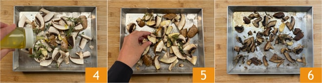 Gießen Sie einen guten Schuss Öl 4 darüber und massieren Sie die Pilze, um das Gewürz gleichmäßig zu verteilen 5. Backen Sie im statischen Ofen bei 200°C für 20 Minuten 6.