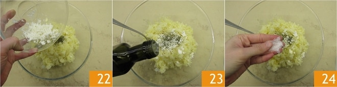 Fügen Sie auch die Fiscidu-Creme hinzu 22, einen Schuss Öl 23 und eine Prise Salz 24.