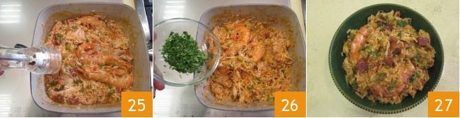 Schalten Sie die Hitze aus, fügen Sie eine Prise schwarzen Pfeffer 25 und frische, gehackte Petersilie hinzu 26 und Ihre Jambalaya ist bereit zum Genießen 27!