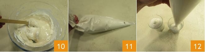 und rühren Sie erneut immer von unten nach oben 10. Sobald Sie eine homogene Mischung erhalten haben, geben Sie sie in einen Spritzbeutel 11 und verwenden Sie ihn, um Ihre Gläser zu füllen;