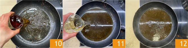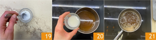 Rühren Sie gut um, um die Stärke aufzulösen 19, fügen Sie sie zum Bratensatz hinzu 20 und kochen Sie noch ein paar Minuten, bis es kocht 21.