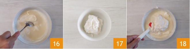 Gut umrühren 16 und die Sahne steif schlagen 17. Dann zur Creme hinzufügen 18.