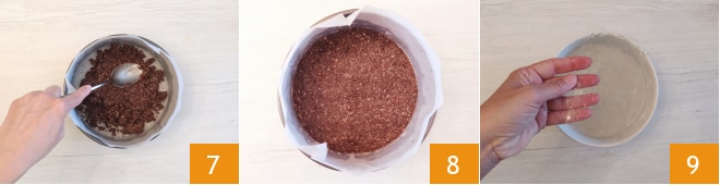 Geben Sie die Mischung in die Form und drücken Sie sie mit dem Rücken eines Löffels fest 7. Lassen Sie sie mindestens 30 Minuten im Kühlschrank fest werden 8. Gehen Sie zur Creme über: Legen Sie die Gelatine etwa zehn Minuten in kaltes Wasser 9.