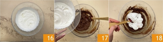 Jetzt schlagen Sie 200 g Sahne 16. Geben Sie sie in die Mischung 17 und mischen Sie gut mit dem Spatel 18.