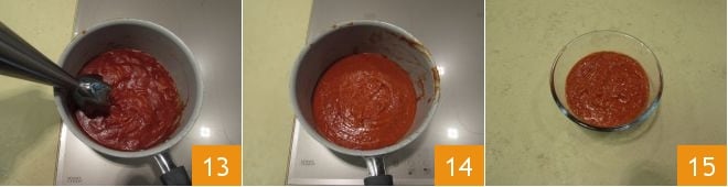 Zu diesem Zeitpunkt pürieren Sie die Mischung 13, um eine glatte und homogene Konsistenz zu erhalten 14. Ihre Ketchup-Soße ist bereit zum Genießen!