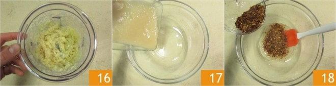 Mixen Sie, bis eine homogene Masse entsteht 16. Geben Sie nun die Reissauce in eine große Schüssel 17 und fügen Sie den getrockneten Chili hinzu 18.