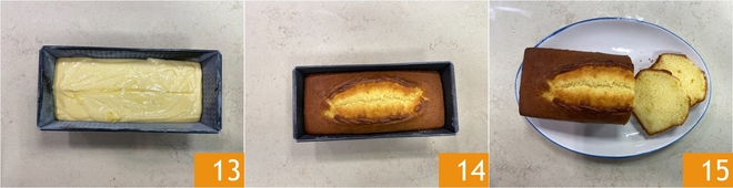 Jetzt müsst ihr den Kastenkuchen nur noch backen 13: Stellt die Form auf die mittlere Schiene des auf 190° vorgeheizten Ofens in Ober-/Unterhitze und backt 15 Minuten, reduziert dann auf 170° und wechselt auf Umluft für weitere 30–35 Minuten 14. Wenn der klassische Kastenkuchen fertig ist, lasst ihn vollständig auskühlen, bevor ihr ihn serviert 15.