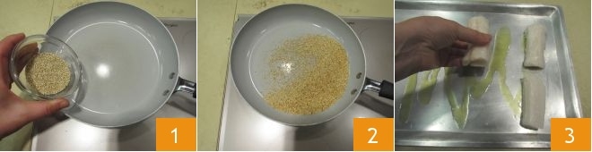 pfeffern und salzen 4 und schließlich die zuvor geröstete Quinoa auf jedes Seehechtfilet geben 5. Im vorgeheizten statischen Ofen bei 200° für 20 Minuten backen 6.