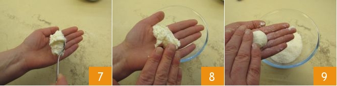 gebt ihn in die Handfläche 7 und formt ihn 8 zu einer Kugel 9.