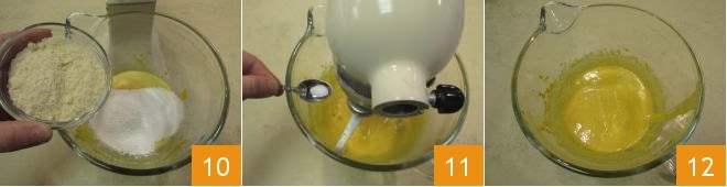 fügen Sie auch das Mandelmehl 10 hinzu und arbeiten Sie alles, um die trockenen Zutaten in die Mischung einzuarbeiten. Zum Schluss fügen Sie das Salz 11 hinzu und arbeiten weiter, bis die Mischung glatt und gleichmäßig ist 12.