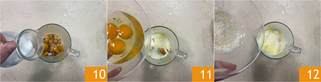 Fügen Sie auch die Sahne 10, die Eier 11 und den Parmigiano Reggiano DOP 12 hinzu.