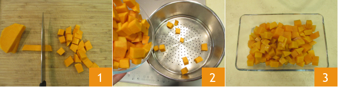 Um die Pumpkin Pie zuzubereiten, beginnen Sie mit dem Schälen des Kürbisses und schneiden ihn in grobe Stücke 1. Dämpfen Sie ihn, bis er weich ist 2. Geben Sie ihn in eine Schüssel und lassen ihn vollständig abkühlen 3.