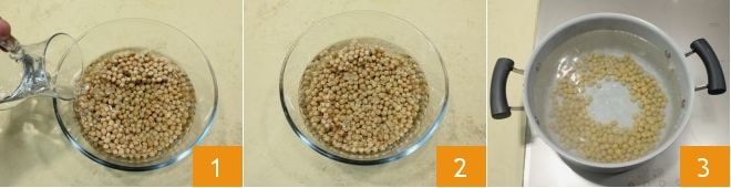 Um die Lagane mit Kichererbsen zuzubereiten, beginnen Sie damit, die getrockneten Kichererbsen (am besten für einen ganzen Tag) in kaltem Wasser einzuweichen (1-2). Nach dem Einweichen abgießen und in einem großen Topf etwa 1 Stunde / 1 Stunde und 30 Minuten kochen lassen, je nach Angabe auf der Packung 3; sie können auch im Schnellkochtopf gekocht werden, wobei sich die Zeiten in diesem Fall halbieren.