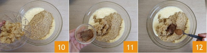 die kandierten Früchte 10, die Gewürzmischung 11 und 5 g Zimt 12.