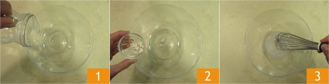 Um die Maritozzi zuzubereiten, beginnen Sie mit dem Lievitino. Geben Sie das Wasser in eine Schüssel 1, fügen Sie die Hefe hinzu 2 und rühren Sie mit einem Schneebesen, bis sie sich aufgelöst hat 3.