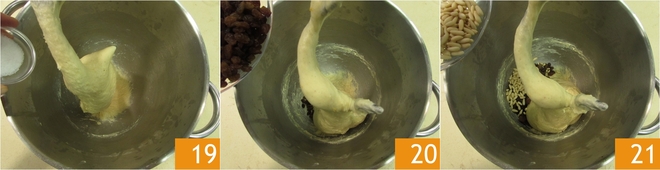 Wenn es gut absorbiert ist, fügen Sie das Salz 19, die Rosinen 20 und die Pinienkerne 21 hinzu.