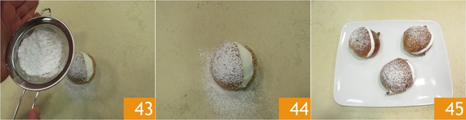 Bestäuben Sie sie mit Puderzucker 43 44 und fahren Sie mit den anderen fort. Servieren Sie sie und genießen Sie sie in Gesellschaft 45.