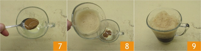 Fügen Sie auch die Haselnusscreme hinzu 7. Gießen Sie den Kaffee darüber 89.