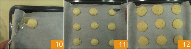 Legen Sie ein Backblech mit Backpapier aus, nehmen Sie einen Löffel Teig 10 und helfen Sie sich mit einem weiteren Löffel, um ihn auf das Blech gleiten zu lassen, wobei Sie einige Zentimeter Abstand zwischen den Keksen lassen 11. Backen Sie in einem vorgeheizten statischen Ofen bei 180° für etwa 15 Minuten. Einmal gebacken, aus dem Ofen nehmen und die Löffelkekse abkühlen lassen, bevor Sie sie genießen 12!