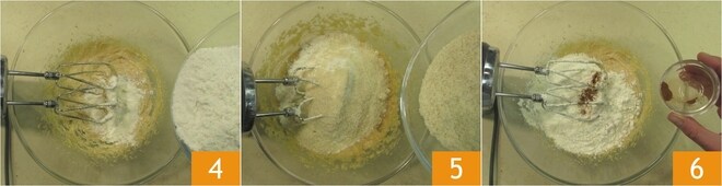 Nun fügen Sie das Mehl Typ 00 4, das Mandelmehl 5 und den Zimt 6 hinzu.