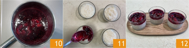 Kochen Sie bei mittlerer Hitze etwa zehn Minuten 10. Nehmen Sie nun die Gläschen aus dem Kühlschrank und garnieren Sie die Oberseite mit der entstandenen Soße 11. Ihr Milchreis mit roten Früchten ist bereit zum Genießen 12!