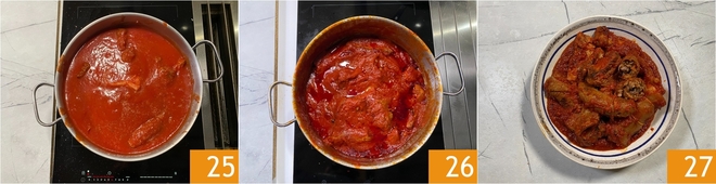 Bei milder Hitze sanft köcheln lassen 25 für 4 Stunden. Denken Sie daran, gelegentlich umzurühren, damit Zwiebel und Sauce nicht am Boden haften bleiben 26. Mit Salz abschmecken und Ihr Ragout ist bereit zur Verwendung 27.<\/p>