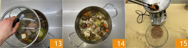 Eine Stunde mit Deckel kochen 13. Nach dieser Zeit den Herd ausschalten und abkühlen lassen 14. Entfernen Sie die Gewürznelken aus der Zwiebel und geben Sie alles durch den Fleischwolf.