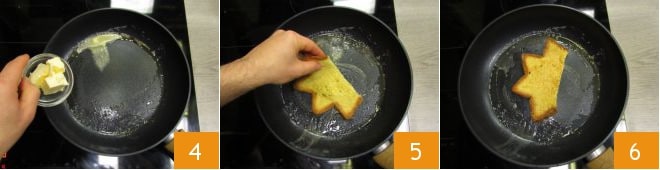 Schmelzen Sie die Butter in einer kleinen Pfanne 4 und rösten Sie die Scheiben von beiden Seiten 5, um sie goldbraun zu machen 6.