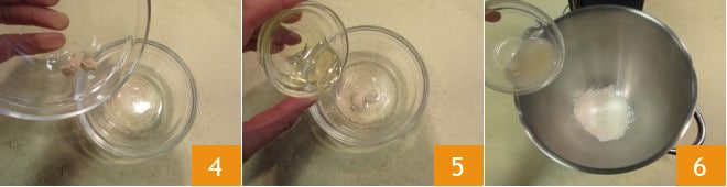 Lösen Sie die Bierhefe im Wasser auf 4, fügen Sie den Honig hinzu 5 und rühren Sie um. Geben Sie das Manitoba-Mehl in die Schüssel einer Küchenmaschine und fügen Sie die in Wasser und Honig aufgelöste Hefe hinzu 6.