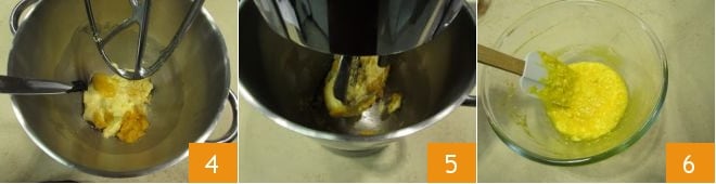 Rühren Sie mit einem Schneebesen, bis sich der Zucker aufgelöst hat 4; gießen Sie dann den Sirup in eine Küchenmaschine mit einem Flachrührer 5. Fügen Sie dann die 250 g Manitoba-Mehl auf einmal hinzu 6 und beginnen Sie zu kneten.