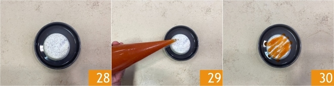 Auf einer Servierplatte anrichten 28, mit der Sauce dekorieren 29 und servieren 30.