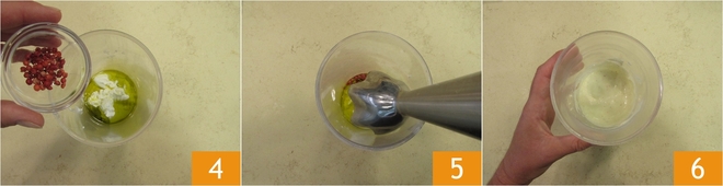 Fügen Sie auch 1 Esslöffel rosa Pfefferkörner hinzu 4 und pürieren Sie alles mit einem Stabmixer 5, bis Sie eine glatte Creme erhalten 6.